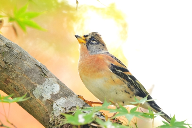 | 樹上の青葉の中のアトリさんは珍しい。 | |