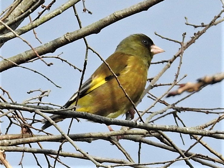 | 久し振りのカワラヒワの撮影、いずれも木のてっぺんに |