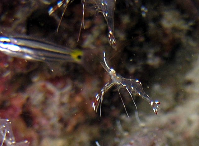 ![]() 2/01 ボンボン 2 ダイビング + ナイト 1 ダイビング 朝6時半にプンタクルズリゾートから船がでます。 リゾートから僅か20分の所にある透明度が15m位の海が今日のポイントです。 遠藤さんが10年前から手がけてこられた「ペットボトル式縄魚礁」があります。 あおりいかの産卵場所となっており今の時期産卵に訪れる彼らの群が昼夜見られます。 オオモンイザリやニシキフウライウオ、ハゼや他の小魚もたくさん集まってきています。 このすぐ近くの浅瀬には元気な珊瑚が健在で、たくさんの小魚達が竜宮の様相をみせてくれまるで自然の水族館さながらのポイントが”ボンボン”です。 時間がたつのを忘れて彼らの乱舞に酔いしれるひとときが過ぎていきます。 1ダイブが終了してから朝食、2ダイブが終わってから昼飯です。昼飯の時には当然サンミゲルを飲みます。 遠藤さんおすすめのナイトダイブは夜の海の不思議さが演出されます。 アオリイカの群、砂から突き出た謎の光る物体、身体にまとわりつく夜光虫などなど幽玄の宇宙に引き込まれていきます。 ただ闇の中なので撮影はちょっと難しかったんです。