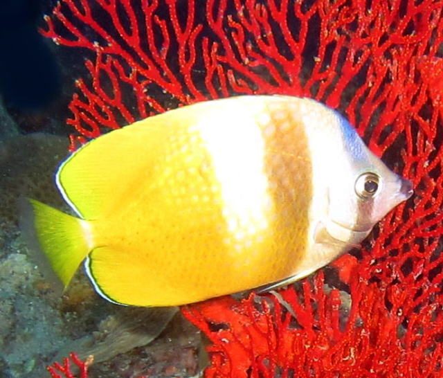 インド洋のミゾレチョウチョウウオは鮮やかだと聞いていたが、シミランで見たものはそうでのなかった。