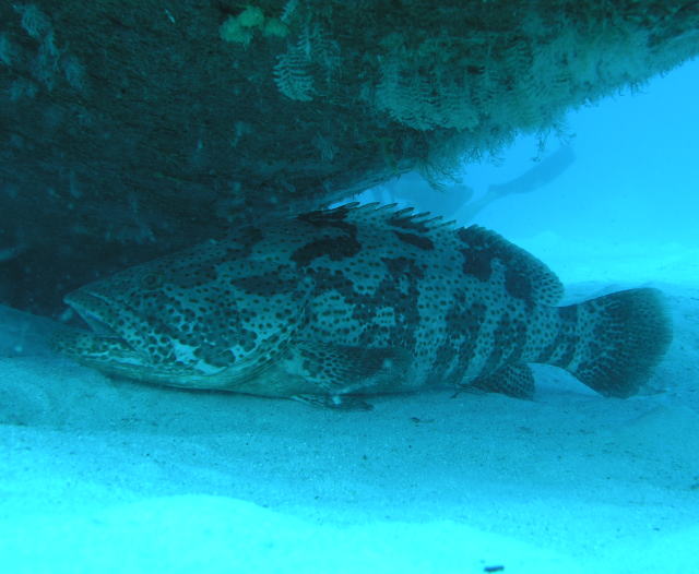 沈船の底にじっとしていたが近づくとそろりと逃げ出した。