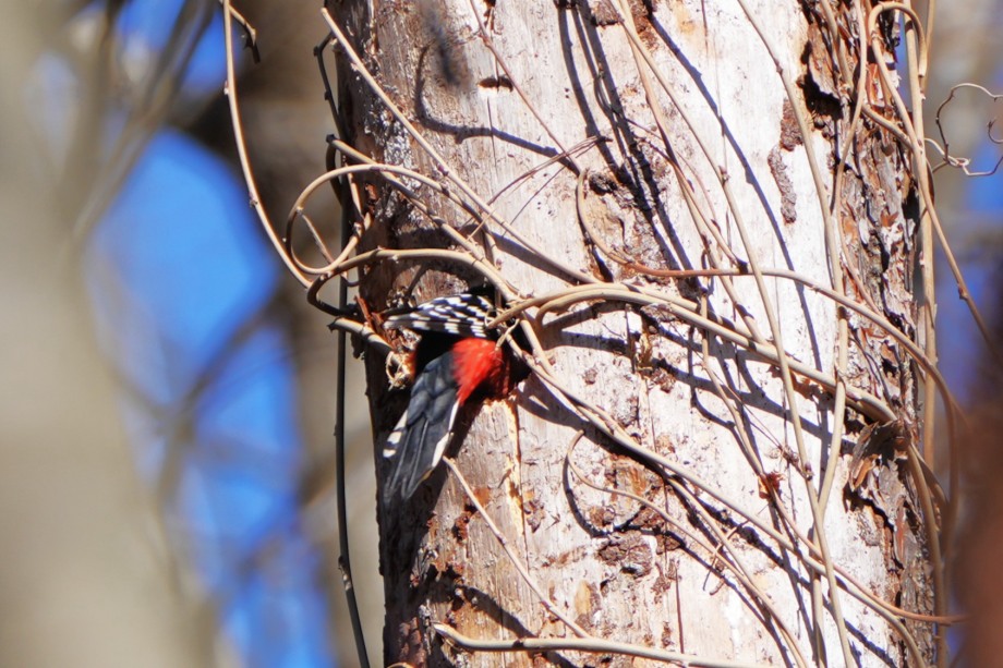 | 次から次へと高木を飛び回るアカゲラさんでした |
