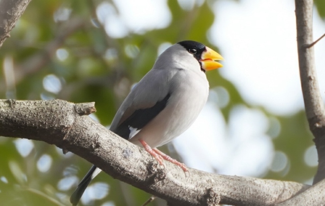 | 冬季には北日本から群としてわたってくるイカルとは別に 留鳥としての夏場のイカルは数が少ないがこの公園に居着いているようだ |