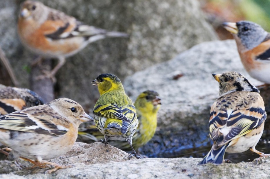 | アトリの群れと一緒に水飲み中だった。 |