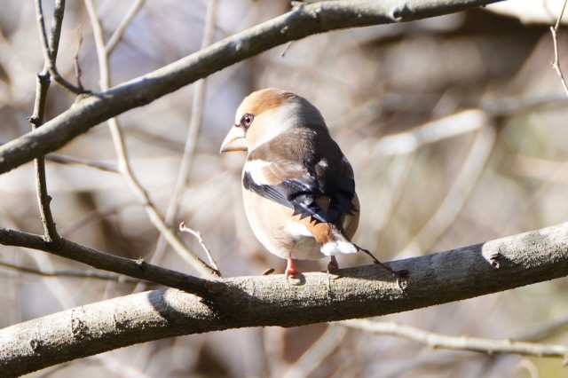| 今回は近くから しかもペアで遊ぶ様子が見られた。 オス 首から上が薄茶色 目もとの隈が濃い |