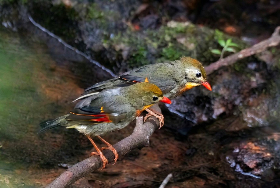 | カメラに向かってポーズを取ってくれた 仲良しのソウシチョウペアを見られた至福の時間だった。 |
