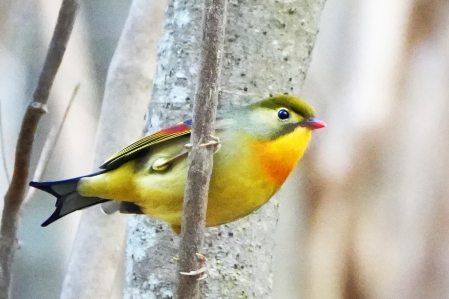 | 高木の上から鳴き声が聞こえるソウシチョウ さん | |||||
